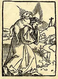 Ксилография Христа, несущего Агнца, иллюстрация из молитвенника Мартина Лютера, 1527