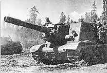 …В течение суток полк вел огонь: 8.07.1943 г. в 16.00 по батарее штурмовых орудий на южной окраине свх. «Поляна». Подбито и сожжено 7 самоходных орудий и разбито 2 ДЗОТа, расход 12 ОФ гранат. В 17.00 по танкам противника (до 10 шт.), вышедшим на грейдерную дорогу 2 км юго-западнее свх. «Батрацкая Дача». Прямой наводкой СУ-152 3-й батареи 2 танка были зажжены и 2 подбиты, один из них Т-6[28]. Расход 15 ОФ гранат. В 18.00 3-ю батарею посетил командующий 7-й гв. А генерал-лейтенант Шумилов и вынес благодарность расчётам за отличную стрельбу по танкам. В 19.00 была обстреляна колонна автомашин и повозок с пехотой на дороге южнее свх. «Поляна», разбито 2 автомашины, 6 повозок с пехотой. До роты пехоты рассеяно и частично уничтожено. Расход 6 ОФ гранат[7].