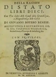 Джованни Ботеро. «Государственное благо» («Della ragion di Stato», 1589)