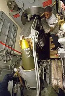 - Loading the BIG GUNS!!! (англ.) (недоступная ссылка). www.ussiowa.org. — Сайт ветеранов линкора «Айова». Описание цикла стрельбы 406-мм орудия Mark 7, в двух частях.. Дата обращения: 27 декабря 2016. Архивировано 8 июля 2016 года.