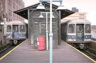 Эта станция была самой восточной на линии и являлась конечной для всех поездов. Она была представлена одной островной платформой и двумя путями. Пути заканчивались тупиками с восточного конца платформы. Для оборота поездов использовался перекрёстный съезд, расположенный к западу от станции. Сразу после съезда начинался третий центральный путь, который имел съезды на два других внешних пути. Центральный путь использовался для отстоя составов и заканчивался после соседней станции 160-я улица.