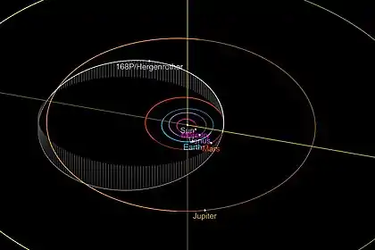 - Орбита кометы Хердженротера 1 и её положение в Солнечной системе