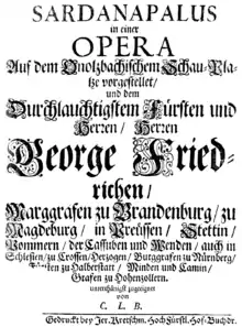 Титульный лист либретто оперы «Сарданапал», единственной сохранившейся оперы композитора Кристиана Людвига Боксберга
