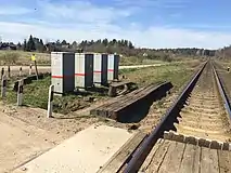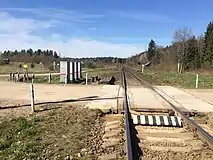 Во время существования разъезда и в ранние советские времена железнодорожный переезд находился в северной горловине разъезда, на современном 175,9 км. Угол грунтовой дороги, образующей железнодорожный переезд, и железнодорожного пути составлял 30°, что противоречило одному из главных требований, предъявляемых к железнодорожным переездам[10]. По этой причине он был перенесён на 400 м южнее.