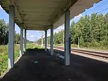 Состоит из двух боковых платформ. Платформы низкие, полной длины, рассчитаны под приём десятивагонного электропоезда. Используется лишь половина длины каждой платформы. На западной платформе находится бывший кассовый павильон, построенный по типовому проекту 1960-х годов, все стены в нём были разрушены в промежутке 2008—2013 годов. На платформах установлены столбы освещения.