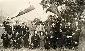 ![]() Бойцы 2-го «русского» батальона 18-й Словенской ударной Базовицкой бригады с командиром Анатолием Дьяченко | |