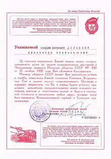- 17.05.1945 г. награждена орденом Суворова II степени.