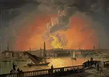 Вид на пожар театра «Друри-Лейн» с Вестминстерского моста, ок. 1809