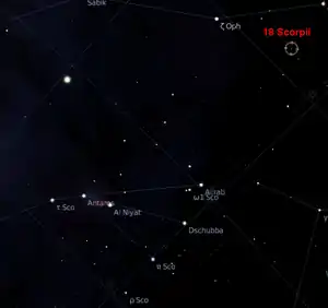 18 Скорпио́на (лат. 18 Scorpii) — одиночная звезда в созвездии Скорпион, которая находится на расстоянии около 45,7 светового года от Земли. Эта звезда примечательна тем, что по своим характеристикам она очень похожа на Солнце.