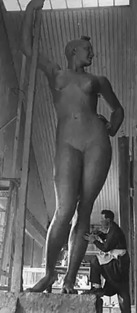 И. Д. Шадр за работой над скульптурой «Девушка с веслом» (1-й вариант)