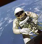 Эдвард Уайт выполняет выход в открытый космос