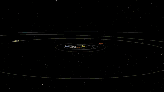 Анимация пролёта астероида Оумуамуа через Солнечную систему