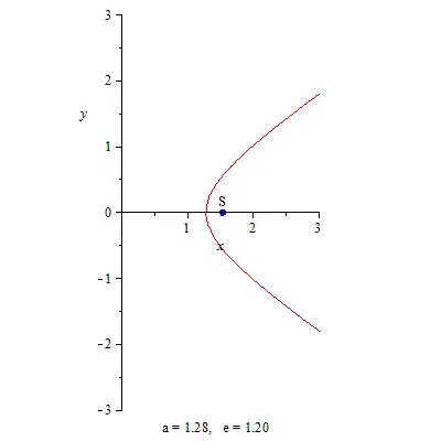 Гипербола, соответствующая траектории 1I/Оумуамуа на плоскости