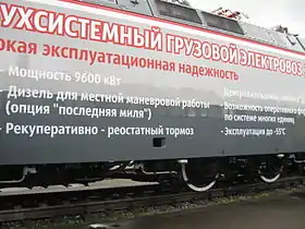 В конструкцию электровоза заложена опционная возможность комплектации локомотива дизель-генераторной установкой для возможности работы в режиме тепловоза на неэлектрифицированных участках.[20] Дизель-генератор позволяет использовать электровоз для вождения поездов на неэлектрифицированных или аварийно обесточенных участках, а также для маневровой работы на неэлектрифицированных путях грузовых станций вне зависимости от наличия свободных маневровых тепловозов.[2]