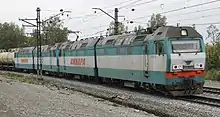 ![]() 2ЭС6-186 в составе грузового поезда | |