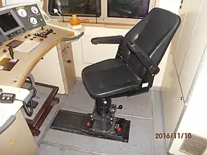- Регулируемые по высоте, углу наклона спинки, выдвижению вперёд-назад жёстко зафиксированные кресла машиниста и помощника.
