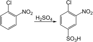 При сульфировании 2-нитрохлорбензола образуется 3-нитро-4-хлорбензолсульфокислота[19]: