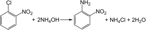 Из 2-нитрохлорбензола получают 2-нитроанилин нагреванием при температуре 170—200 °С с водным 30—34 % раствором аммиака при давлении 30—40 атм.[17]: