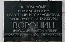 д. 8 — мемориальная доска Н. Воронину