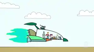 ![]() Бендер, Фрай, Лила и Профессор Фарнсворт летят на корабле «Межпланетного экспресса» в двухмерном измерении | |