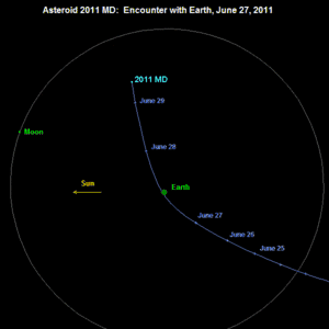 2011 MD — небольшой яркий астероид, околоземный объект, относимый к классам аполлонов и амуров.[1][3] 27 июня 2011 года около 17:00 UTC (13:00 EDT) объект прошёл близко к поверхности Земли на расстоянии около 12 тысяч км (приблизительно такое значение имеет диаметр Земли).[6][7][8]