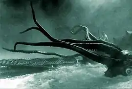 Технически наиболее сложной сценой стала схватка с гигантским спрутом. Для неё было создано механическое чучело моллюска, весом более тонны, управляемое при помощи тросов и гидравлики, несколькими десятками операторов. Построили его по увеличенным изображениям настоящих кальмаров, но щупальца были удлинены примерно вдвое, до 12 метров. В реальной пропорции они выглядели слишком короткими. Руководил постройкой по эскизам Боба Матти скульптор Крис Мёллер[19].