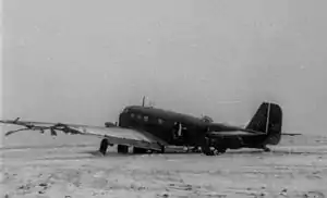 Повреждённый советскими танкистами немецкий самолёт на лётном поле под Калинином.