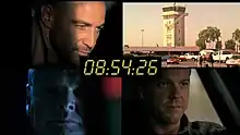 Пример разделённого экрана с цифровыми часами. Второй эпизод пятого сезона.