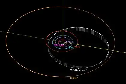 - Орбита кометы Неуймина 1 и её положение в Солнечной системе