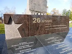 - Н. В. Огарков. Двадцать шестая армия // Советская Военная Энциклопедия. — Москва: Воениздат, 1977. — Т. 3. — С. 110—111. — 672 с. — 105 000 экз.