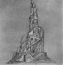 По проекту Якулова-Щуко монумент высотой около 56 метров имел шесть этажей и заканчивался открытой обзорной галереей. На первом этаже размещалась библиотека с книгохранилищем и архивом, на втором — колонный зал с хорами, на 3—6 этажах — памятные комнаты вождей революции. Снаружи спиралеобразный пандус «Дорога 26-ти» оформлялся скульптурами 26 бакинских комиссаров. Мемориал на площади Свободы, задуманный не просто как памятник людям, а как памятник, событиям, воплотившим идеи миллионов, — «мог превращаться в центр народных форумов, массовых театральных действ, концертов, празднеств по случаю торжественных дат».[5]