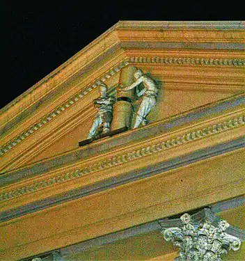 Скульптуры на фасаде «Дома союза горняков» на площади, скульптор Степан Эрьзя