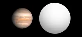 ![]() Сравнительные размеры 2M1207 b и Юпитера | |