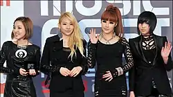 ![]() Слева направо: Дара, CL, Бом и Минджи . | |