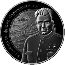 ![]() Памятная монета Национального банка Республики Беларусь «3–й Белорусский фронт. Черняховский И. Д.». 14 апреля 2010 года. | |