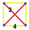 Комплексный многоугольник 2{4}3 имеет 6 вершин в с вещественным представлением в с тем же расположением вершин как у 3-3 дуопирамиды. Многогранник имеет 9 2-рёбер, соответствующих рёбрам 3-3 дуопирамиды, но 6 рёбер, соединяющих два треугольника, не включены. Его можно рассматривать в шестиугольной проекции с 3 наборами раскрашенных рёбер. Это расположение вершин и рёбер даёт полный двудольный граф, в котором каждая вершина одного треугольника связана с каждой вершиной другого. Граф называется также графом Томсена или 4-клеткой[2].