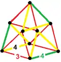 ![]() 2{4}3 с 6 вершинами (синими и красными) связанные 9 2-рёбрами в виде полного двудольного графа. |