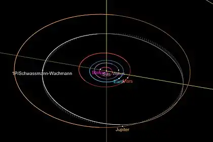 - Орбита кометы Швассмана — Вахмана 2 и её положение в Солнечной системе
