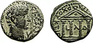 Монета Ирода Филиппа II, с изображением Тиберия