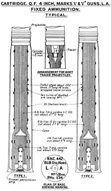 Орудия ранней модели с низким углом возвышения имели раздельно-гильзовое заряжение. Ко времени Второй мировой войны большинство орудий использовало унитарные выстрелы[2].