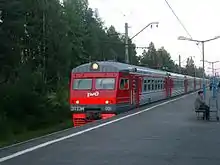 Прибытие электропоезда на Сосново к платформе