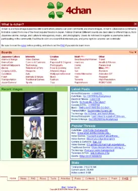 ![]() Заглавная страница 4chan 1 февраля 2009 года | |