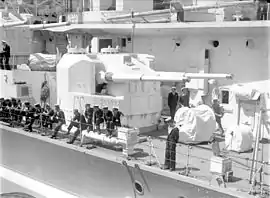 ![]() 133-мм орудия QF Mark I в двухорудийной башне на линкоре «Кинг Джордж V» | |