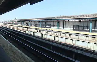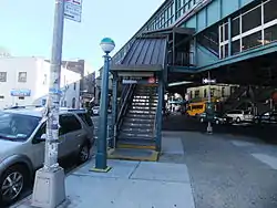 Станция имеет единственный выход, расположенный в центральной части платформ. Лестницы с каждой платформы ведут в эстакадный мезонин под платформами, где расположен турникетный павильон, зал ожидания и проход между платформами. Оттуда в город ведут три лестницы, ко всем углам перекрёстка Нью-Ютрект авеню и 55-й улицы, кроме северо-западного.