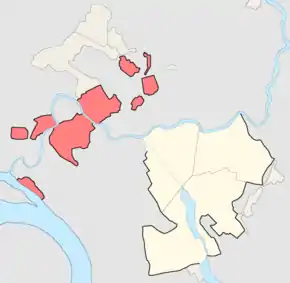 Южнее находились 1-я и 2-я полицейские части, севернее — Пороховая слобода, Ивановская и Удельная стройки, восточнее — Савиновская стройка.