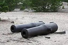 ![]() 60-фунтовые пушки на берегу острова Готска-Сандён, оставленные там после того как клипер «Всадник» наскочил на камни | |