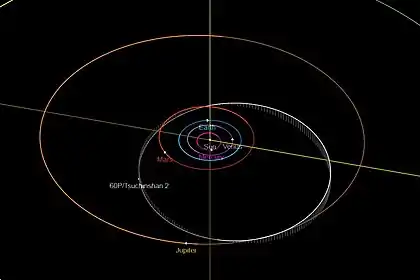 - Орбита кометы Цзыцзиньшань 2 и её положение в Солнечной системе