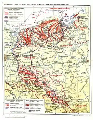 Курская битва Орловская наступательная операция, Черниговско-Припятская операция, Гомельско-Речицкая операция, Калинковичско-Мозырская операция, Белорусская стратегическая наступательная операция Люблин-Брестская операция, Прибалтийская стратегическая наступательная операция Рижская наступательная операция, Курляндский котёл, Варшавско-Познанская наступательная операция, Висло-Одерская наступательная операция, Восточно-Померанская операция, Берлинская наступательная операция |