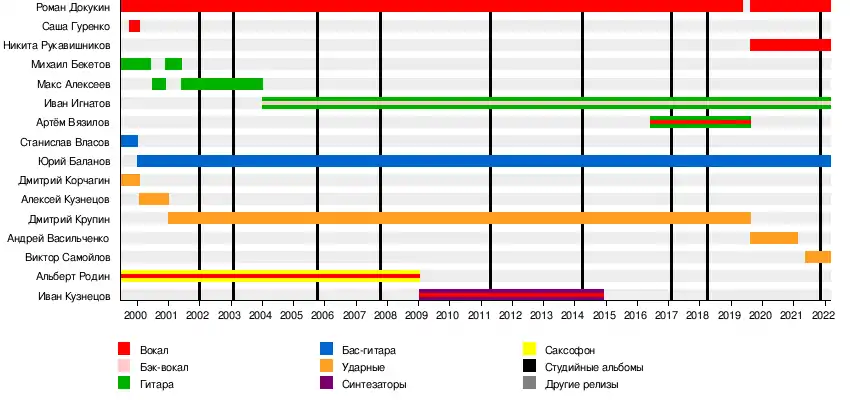 - Роман «Крест» Докукин — вокал (1999 — 2019, 2019 — настоящее время)
