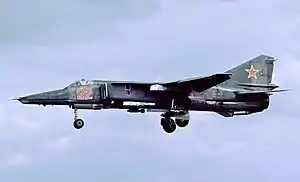 Проводившиеся следом войсковые испытания МиГ-27 на базе полка обосновывались освоенностью в полку близких по типу МиГ-23Б и МиГ-23БН. Лётчики и техники имели наибольший в ВВС опыт работы с истребителями-бомбардировщиками. Переучивание полка проводилось не только в 4-м ЦБП и ПЛС в Липецке, но и на собственной учебной базе. Лётчики и техники командировались на завод, где в агрегатных и сборочных цехах вплотную знакомились с конструкцией и получали наставления от заводских испытателей. Войсковые испытания начались с января 1975 года. Всего полк получил 43 МиГ-27 — больше штатного количества в 40 машин (по 12 в каждой из трёх эскадрилий и ещё четыре в звене управления). Три самолёта добавили с учётом обеспечения войсковых испытаний, чтобы избежать сбоев на случай выхода техники из строя или других непредвиденных обстоятельств, не исключая и лётные происшествия. Учебно-боевые самолёты были получены ещё вместе с МиГ-23БН. Войсковые испытания МиГ-27 в завершились к началу 1976 года с общим налётом 1130 часов. В дальнейшем полк оставался лидерным по МиГ-27 — с появлением новых модификаций они также сперва направлялись на «обкатку» в полк, а уже послужившие машины передавались в другие полки[4].